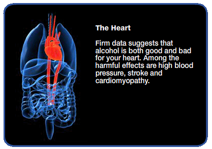 Alcohol in the body causes your heart to beat faster!! Long term drinking and heavy alcohol consumption is linked with weakness of the heart muscle.